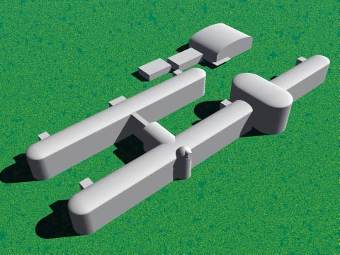 オーソドックスに空撮風。今になってプールと体育館脇のクラブハウスがまだ作ってないのに気がつきました。 |