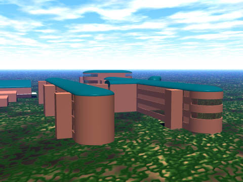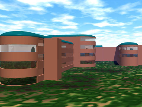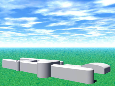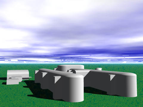 取り敢えず作ってみました。壁とか窓とか地面のテクスチャー貼りなどまだ色々遣り残したことがありますが、一先ず公開。利用ソフトはBryce 3D (日本語版)。