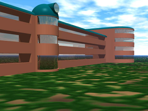 校舎西方から。左の校舎の窓が消えてます。ブーリアン演算を失敗したようです。 |